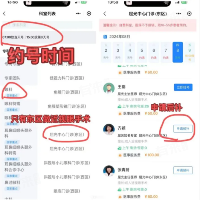 (2)首次预约不用执着约专家号:因为到现场就是给你开单子做检查,谁的号都行,重要的是把检查做了,就是可以评估你适合做哪类手术。