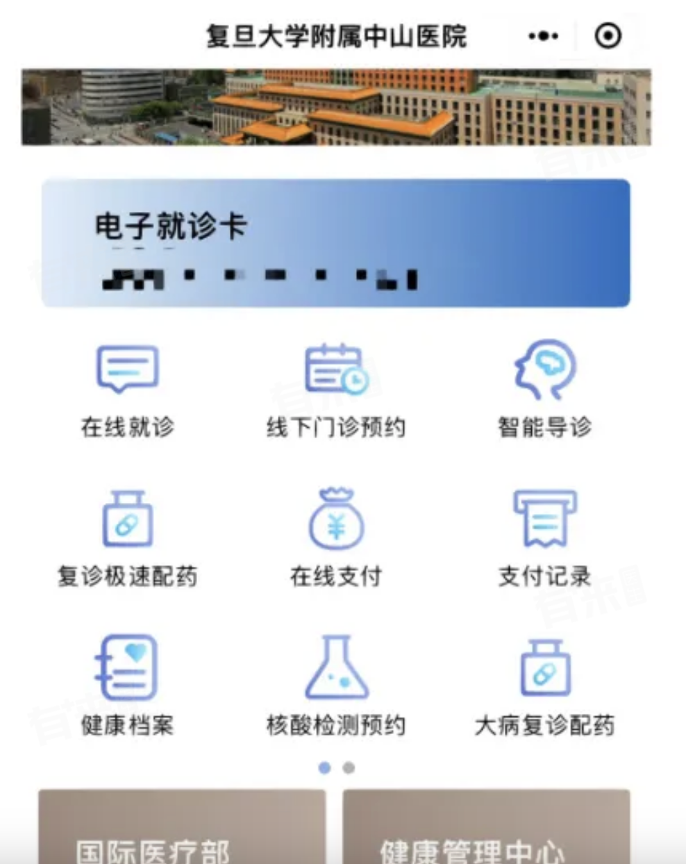 方式1:“复旦大学附属中山医院门诊服务”微信公众号