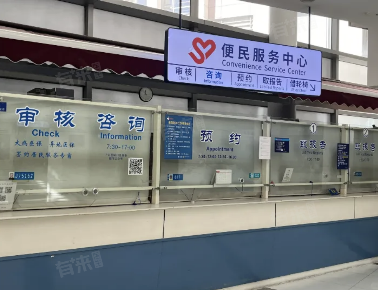 东院区门诊:1楼便民服务中心;