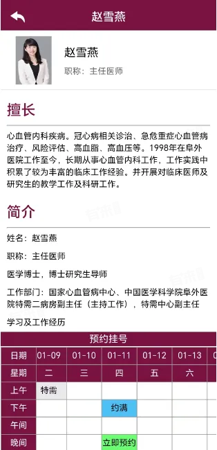 “掌上阜外医院”APP可以预约5日内的门诊号、特需号,每天中午12点开始放号。