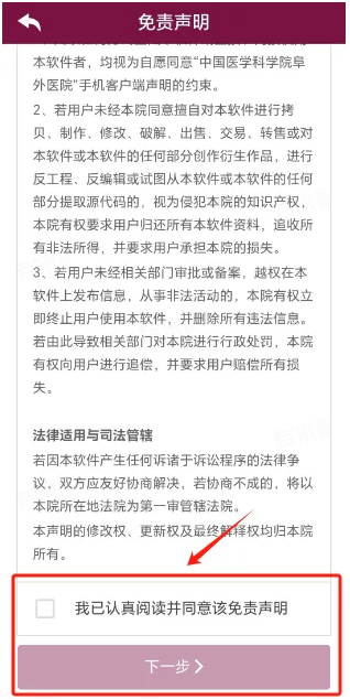 3、勾选免责声明,开始注册
