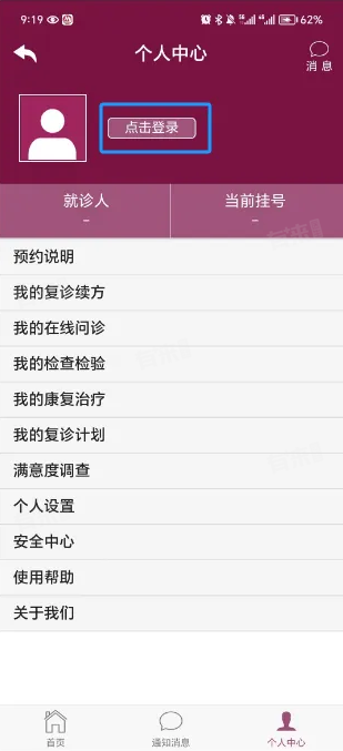 1、账号注册后回到APP首页,点击“预约挂号”按钮,进入添加就诊人流程