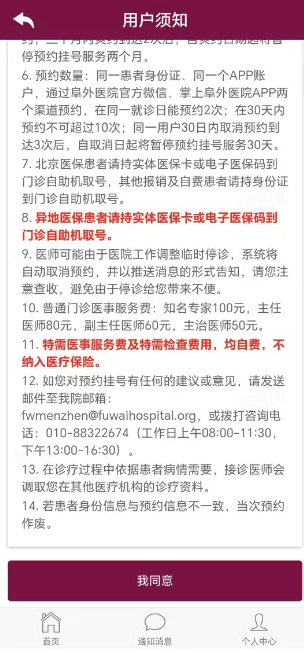 2、点击后出现用户须知页面,点击同意,进入添加就诊人页面