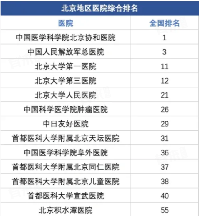 北京聚集了全国最好的医疗资源,进入全国前100强的医院就超过20家。