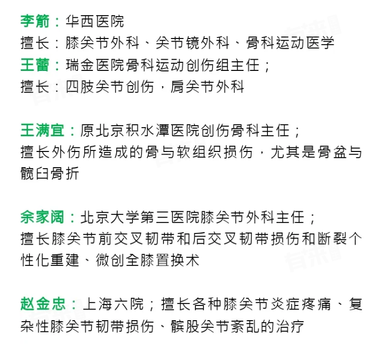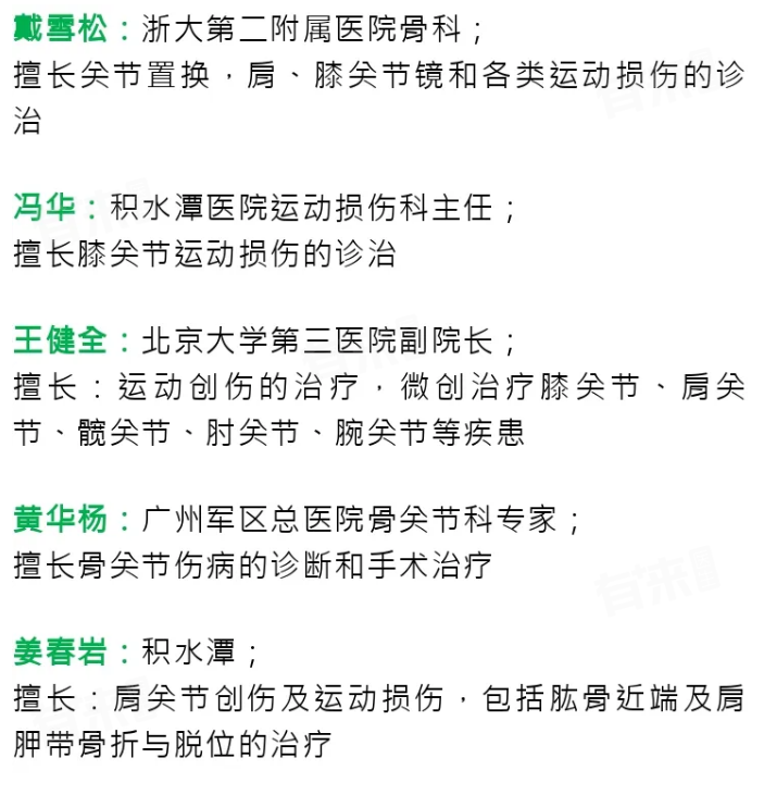 本文为大家盘点国内运动医学科的专家,排名不分先后。
