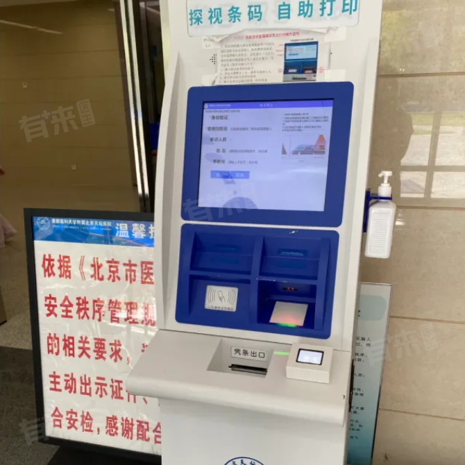办理住院时给的患者手环,上面有住院编码,可以拍照保存,后续进手术等候室和入院探病时,都需要用这个住院编码到自助机打印条码,如图的机器。