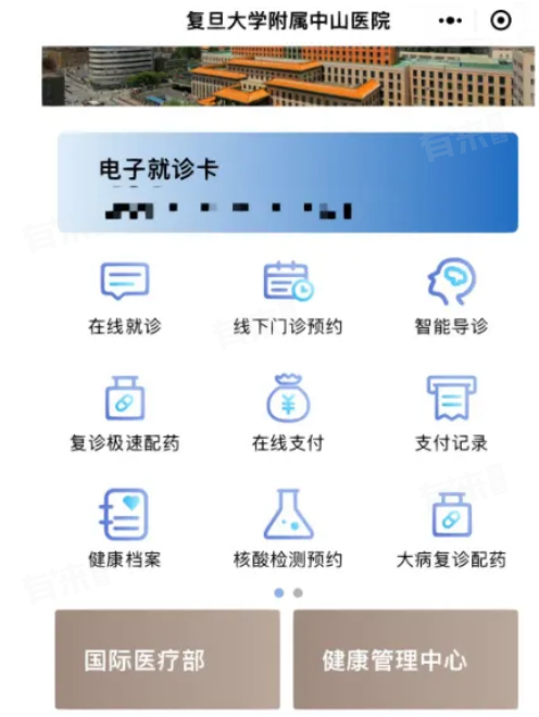 方式3:“复旦大学附属中山医院互联网医院”微信小程序
