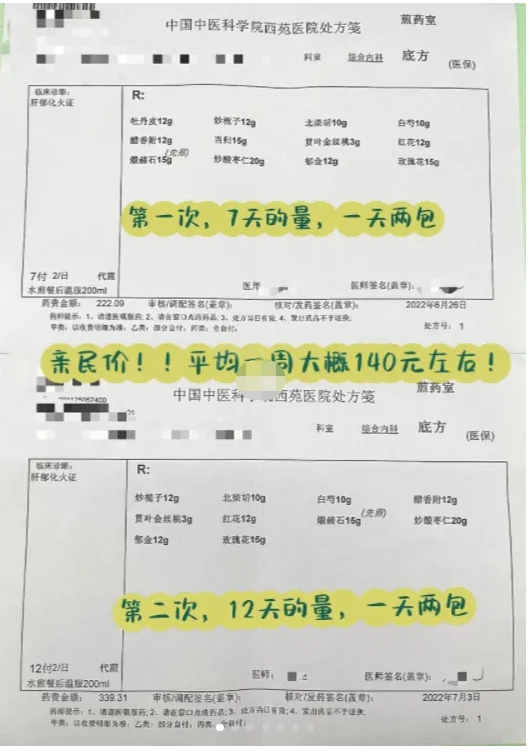 中医的一个特点就是需要频繁的复诊,一般每次开两周左右的药,喝完就去复诊,根据你喝药的反应,医生及时调整。每次平均每次五六百,中草药都可以报销。